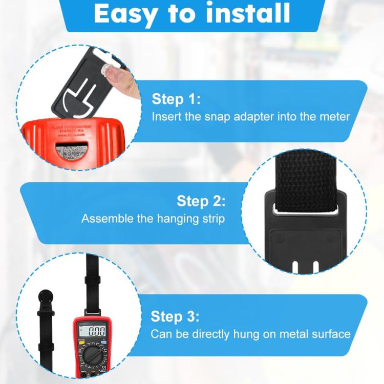 6. The length of the magnetic hanging strap is adjustable. After installing the magnetic buckle, the multimeter can be hung on a hook or on a nail on the wall, helping you save more space