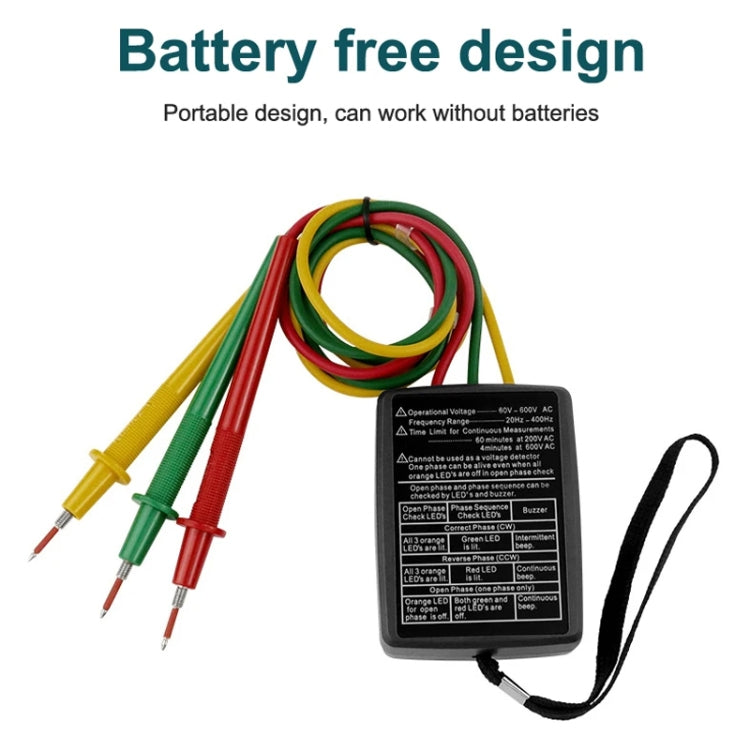 1. It can be used to detect the open phase state and phase sequence, phase sequence by the light-emitting diode (LED) and buzzer indication