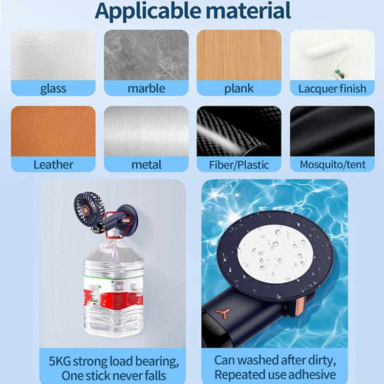 2. Detachable Base & Washable Adhesive: The base and fan can be separated for easy installation and portability. The reusable, strong adhesive base is washable and offers secure placement.