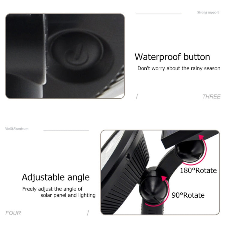 ٣. زوايا قابلة للتعديل للكشافات الشمسية والألواح الشمسية لضمان زاوية إضاءة مثالية وشحن مثالي للطاقة الشمسية. يُستخدم بسهولة كإضاءة جدارية شمسية عن طريق تثبيته في الحائط أو إضاءة أرضية شمسية، أو لصقه بالأرض.