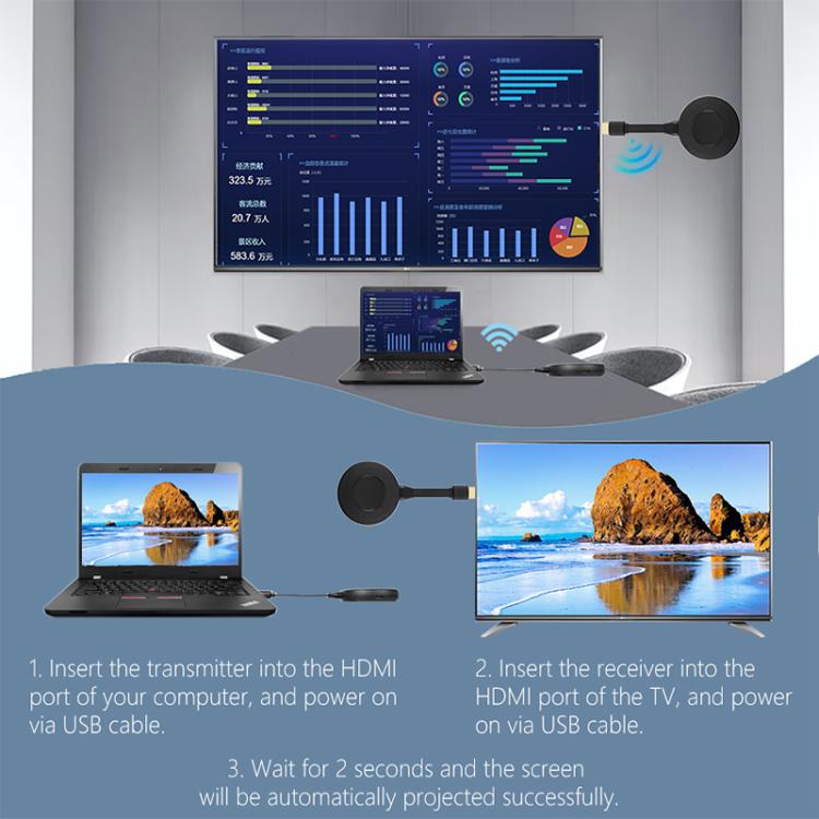 8. Wirelessly transmit 1080P HD video and audio signals from your device to your TV or projector, eliminating cable clutter.