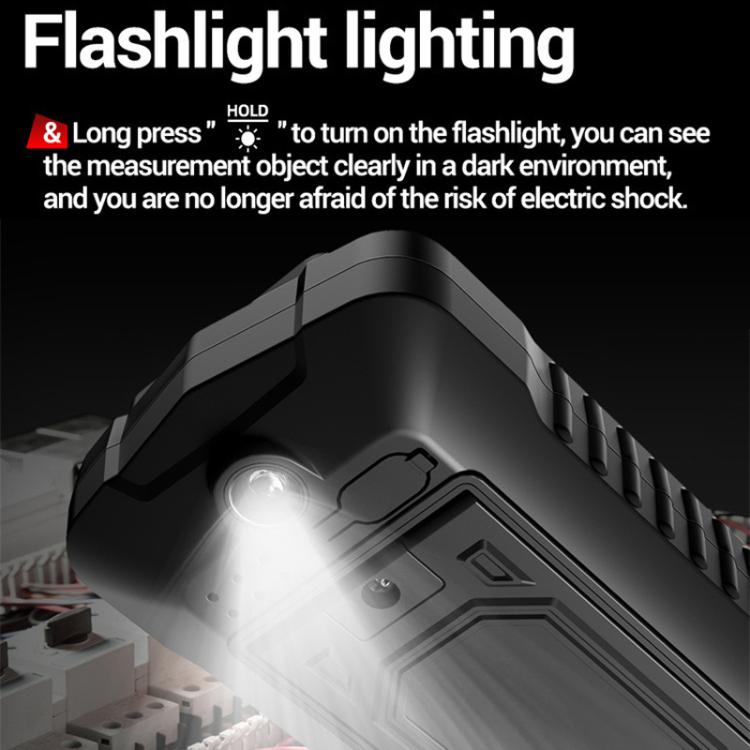 20. Long press to turn on the flashlight, you can see the measured object clearly in a dark environment, and illuminate the front for you without fear of electric shock risks