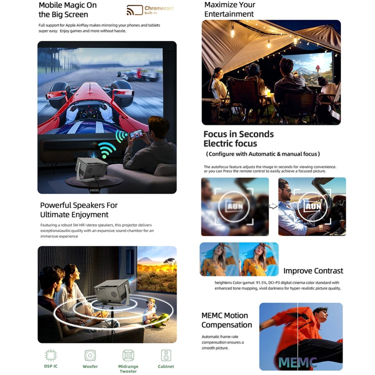 AUN A003 Pro 1920 x 1080P 350 Lumens Portable Home Theater LED HD Digital Projector