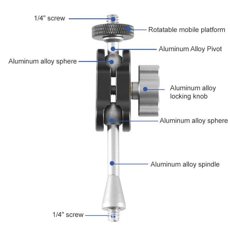 4. The double-headed 1/4 inch screw is fixed, with a locking knob ensures secure and quick operation.