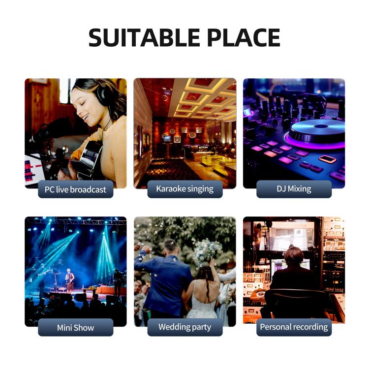 4. +48V phantom power supports condenser microphones