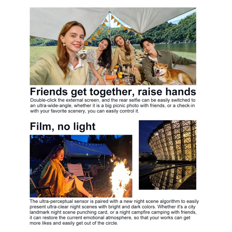 5. أوضاع التصوير: وظيفة التصوير الخلفي: فيلم صغير، وضع البكسل العالي، التصوير الفوتوغرافي الفاصل الزمني، زاوية عريضة للغاية، ضبابية فتحة كبيرة، فيديو مشهد مزدوج، مشهد ليلي فائق، ماكرو فائق، فيديو ماكرو، صورة ماكرو داخل صورة، وضع عمودي، وضع احترافي، حركة بطيئة، وضع بانوراما، فن أبيض وأسود، مرشح ذكي، علامة مائية، تصحيح المستندات، ماجستير التصوير بالذكاء الاصطناعي، صورة ديناميكية، لقطة شاشة مغلقة، التركيز التنبئي رباعي الأبعاد، لقطة ابتسامة، صورة يتم تنشيطها صوتيًا، صورة مؤقتة، لقطة متسلسلة، قبل لقطة مدمجة وظيفة التصوير البطيء، التبديل الذكي للزاوية العريضة، وضع عمودي، وضع بانوراما، التصوير الفوتوغرافي الفاصل الزمني، صورة ديناميكية، مرشح ذكي، علامة مائية، التقاط وجه مبتسم، مرآة سيلفي، صورة يتم تنشيطها صوتيًا، صورة مؤقتة.
