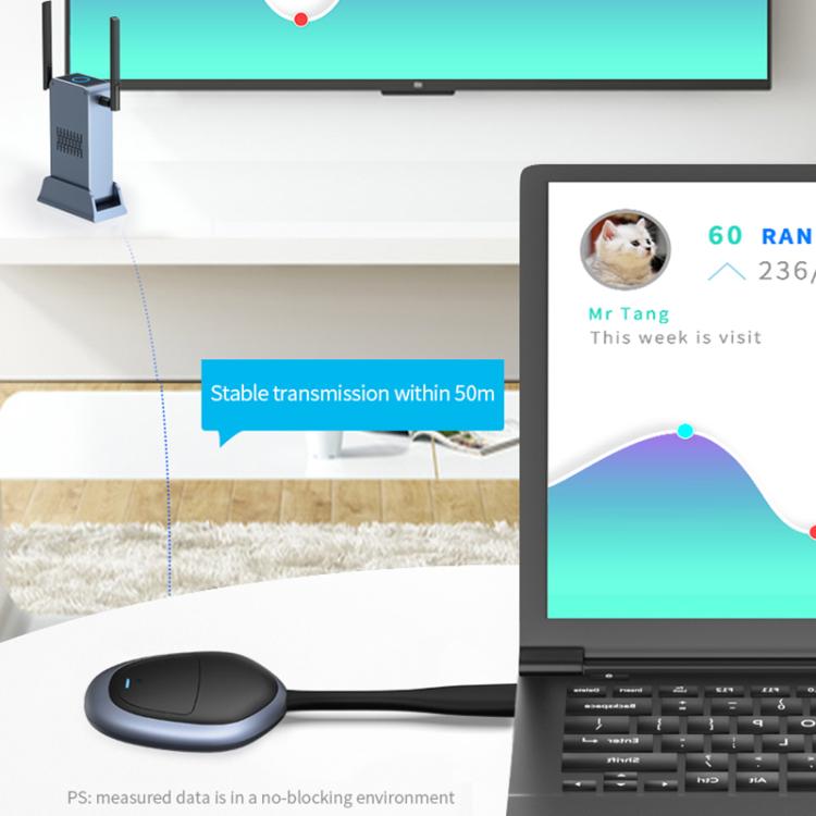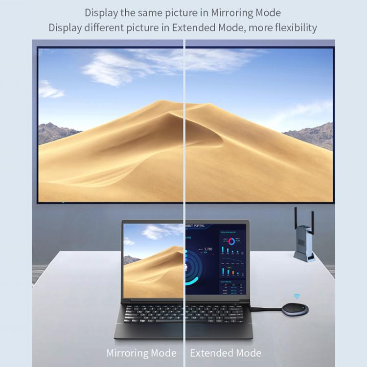 1. Support wireless HDMI screen projection: This smart wireless HDMI transmitter and receiver supports screen projection and screen expansion functions, which can wirelessly transmit HDMI signals from your computer, set-top box, game console, camera and other devices to large-screen devices such as TV and projector, and are widely used in daily office, meeting, entertainment, etc.