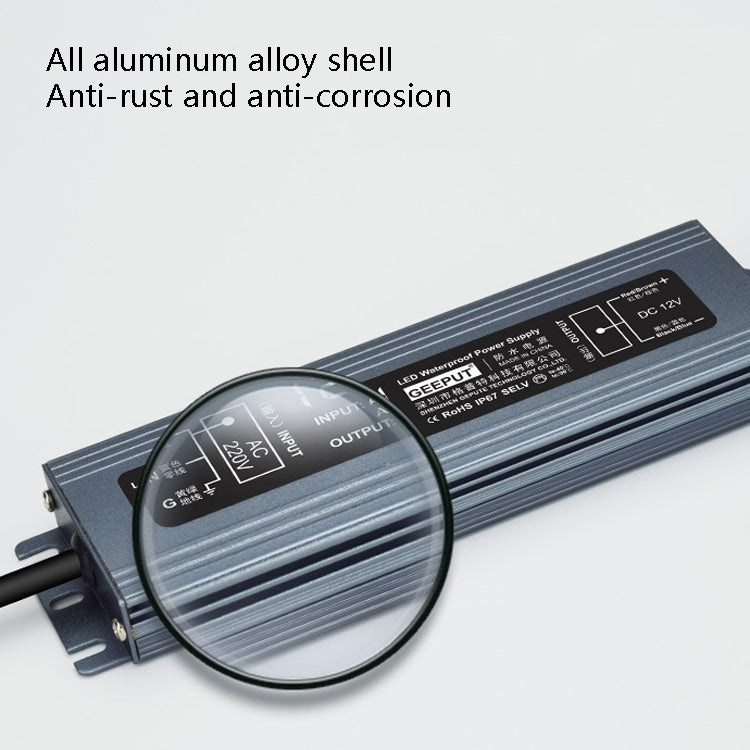GEEPUT 220V Turn 12V LED Waterproof Power Supply Transformer, 1.67A 20W, 2.5A 30W, 3.33A 40W, 4.16A 50W, 5A 60W, 6.67A 80W, 8.33A 100W, 10A 120W, 12.5A 150W, 16.7A 200W, 21A 250W, 25A 300W, 29A 350W, 33.4A 400W, 41.7A 500W, 50A 600W