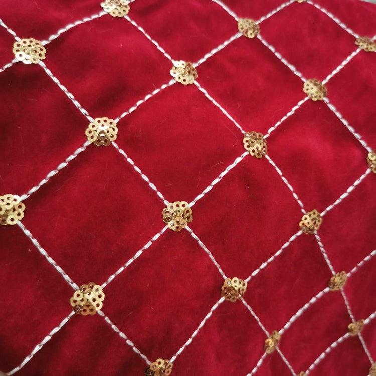 GM89719 جوارب عيد الميلاد المربّعة المرصّعة بالترتر، حقيبة هدايا حلوى للعطلات، أحمر، أبيض