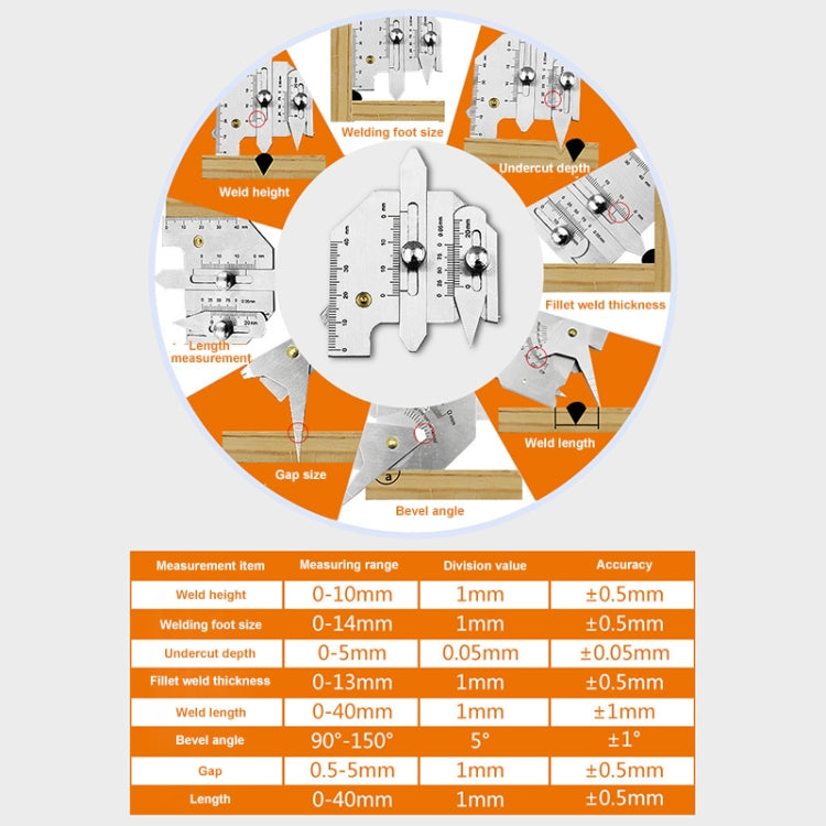 مسطرة قياس فحص اللحام من الفولاذ المقاوم للصدأ HJC40B، HJC40B