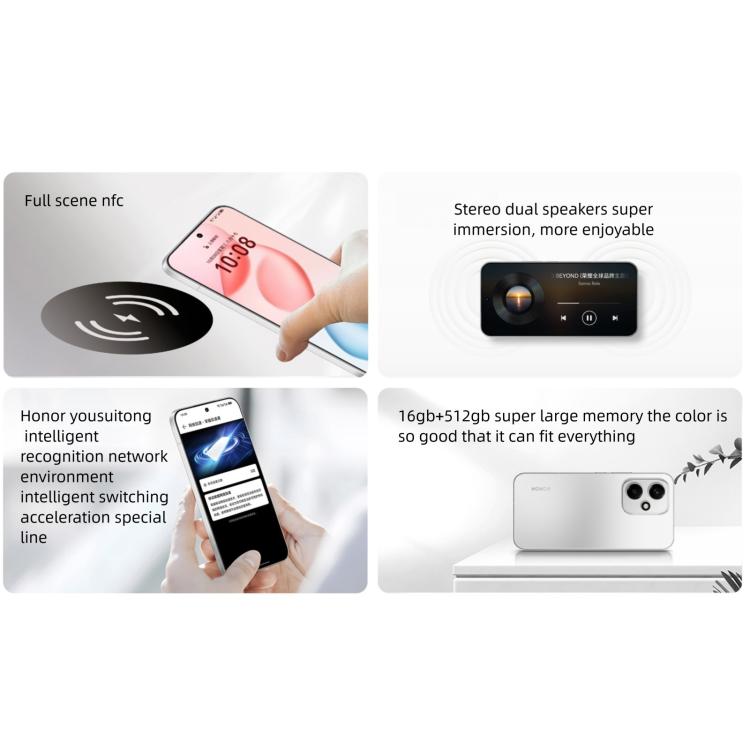 هونر 400، 16 جيجابايت + 512 جيجابايت، شاشة بصمة الإصبع، 6.55 بوصة MagicOS 9.0 / Android 15 Snapdragon 7 Gen 4 Octa Core، الشبكة: 5G، NFC، OTG، هونر 400، 16 جيجابايت + 512 جيجابايت