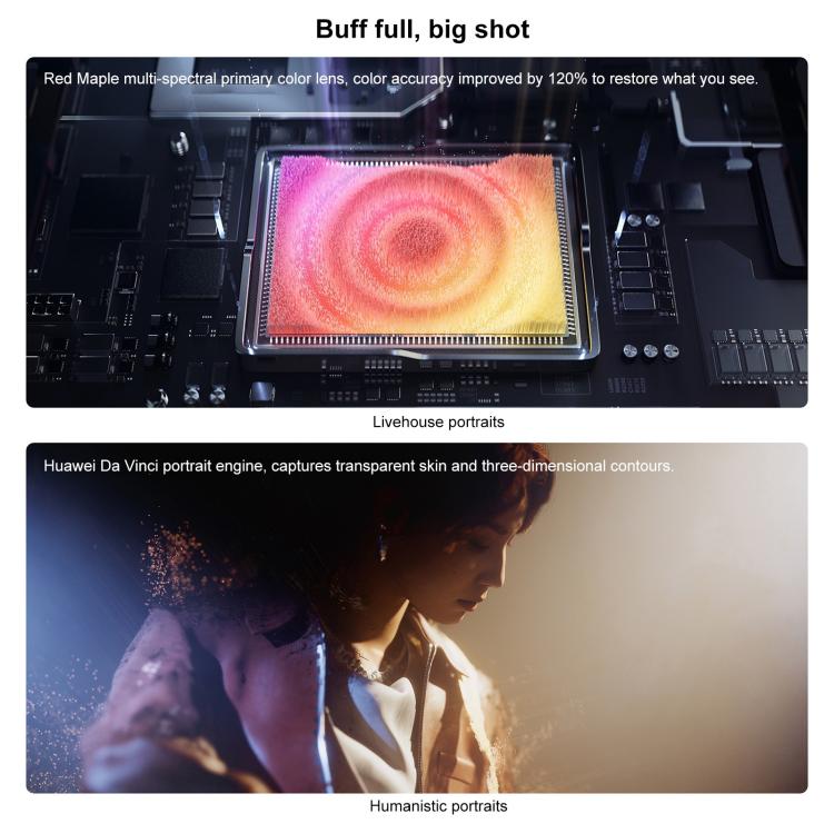 1. الكاميرا الخلفية: عدسة RYYB متغيرة الفتحة بدقة 50 ميجابكسل (F1.4~F4.0، OIS) + عدسة مقربة RYYB بدقة 50 ميجابكسل (F2.2، OIS) + عدسة ماكرو RYYB فائقة الاتساع بدقة 13 ميجابكسل (F2.2) + عدسة أساسية متعددة الأطياف بدقة 1.5 ميجابكسل من خشب القيقب الأحمر (F2.4)