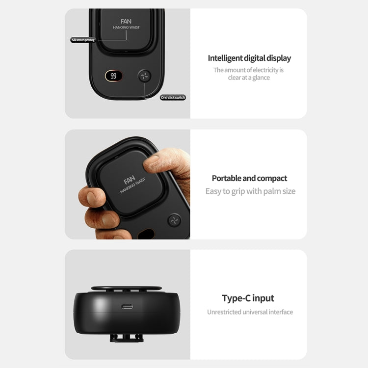 HX-150A Outdoor Digital Display Silent USB Charging Bladeless Waist Hanging Neck Fan