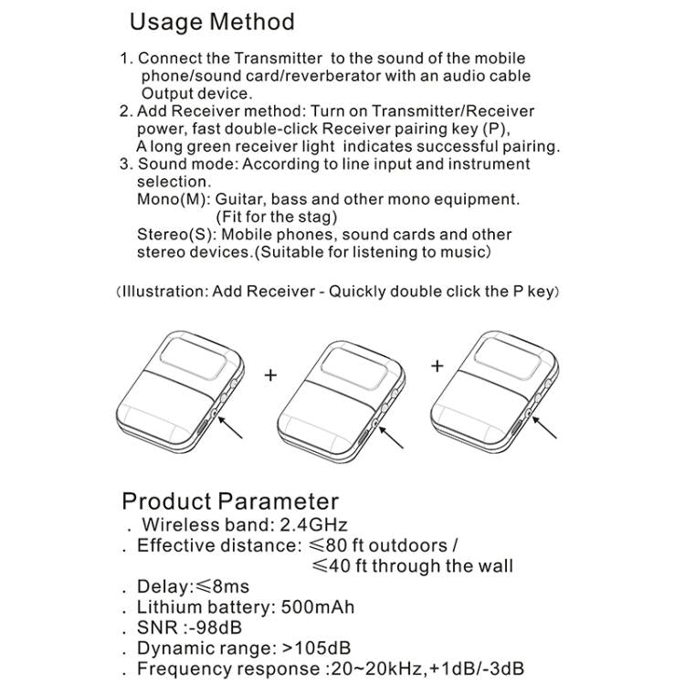 1. Adopt 2.4 GHz frequency band chip, it is a low-noise, low-latency, dual-channel stereo intelligent wireless monitoring system