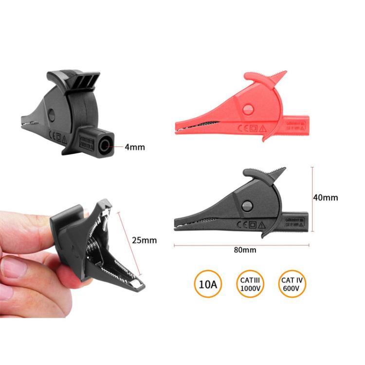 3. Alligator clip: can connect 4mm banana plug wire, PA66 nylon shell, good insulation; iron-nickel material, super conductivity