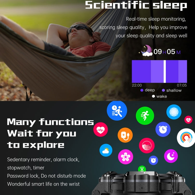 1. Functions: 6 sets of themes, custom dial, support step counting, brightness adjustment, multi-sport mode, sleep detection, heart rate, blood pressure, blood oxygen, breathing training, information push, remote music, remote camera, voice assistant, Real-time weather, find mobile phone (connected to mobile phone), alarm clock, timer, stopwatch, do not disturb mode, female menstrual cycle, Bluetooth call