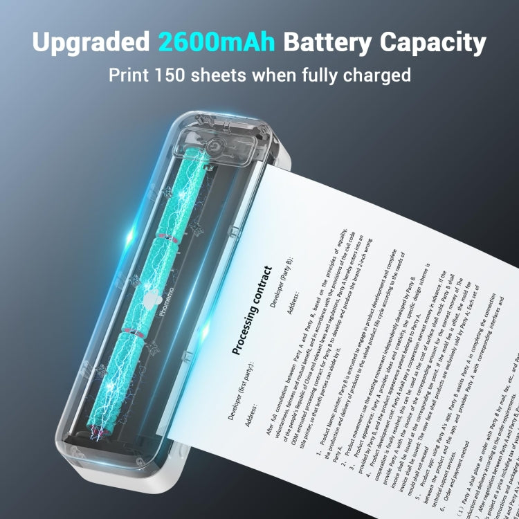 4. 2600mAh Rechargeable Battery: Phomemo wireless printer has a built-in 2600mAh rechargeable battery, which can print more than 150 pages continuously. Say goodbye to the worry of running out of power! Whether you are in the car, on the road, or engaged in outdoor activities, you can print freely and share the beautiful moments with your loved ones. Note: The battery capacity of most thermal printers on the market is only 1200mAh.