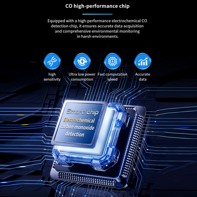 12. Real-time monitoring of CO content in the environment. When the CO concentration is too high, an audible and visual alarm will be issued to prevent danger