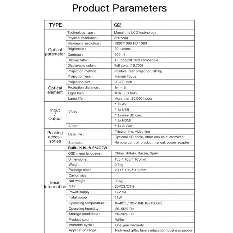 Q2 LED 1080P Mini Portable Projector Children Projector