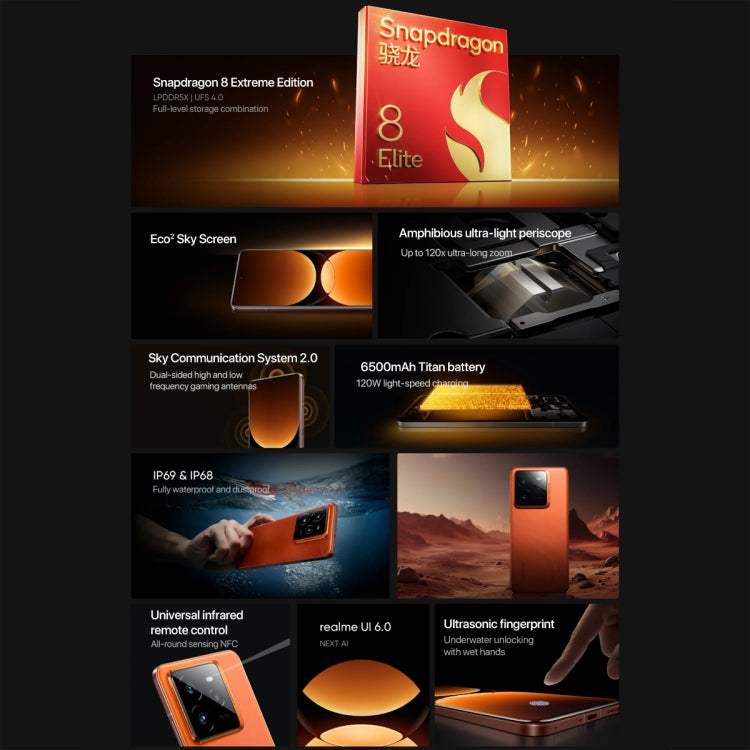Realme GT7 Pro، 12 جيجابايت + 256 جيجابايت، 6.78 بوصة، أندرويد 15 / واجهة Realme UI 6.0، Snapdragon 8 Elite ثماني النواة، NFC، الشبكة: 5G، يدعم Google Play، 12 جيجابايت + 256 جيجابايت