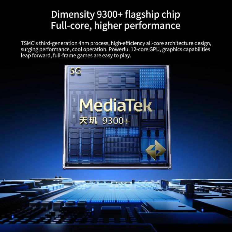 1. وحدة المعالجة المركزية: MediaTek Dimensity 9300+، ثماني النواة، 4 نانومتر، 64 بت، 3.4 جيجاهرتز