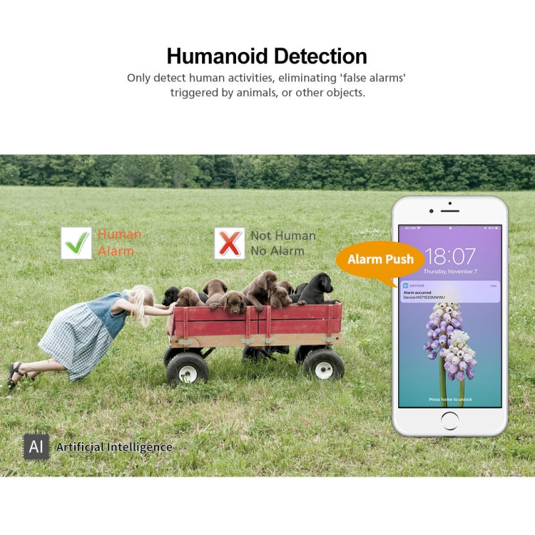 كاميرا سريكام SP028 PTZ خارجية عالية الدقة بدقة 1080 بكسل، تدعم الصوت ثنائي الاتجاه / كشف الحركة / كشف الإنسان / رؤية ليلية ملونة / بطاقة TF، قابس أمريكي، قابس أسترالي، قابس أوروبي، قابس بريطاني، قابس أمريكي