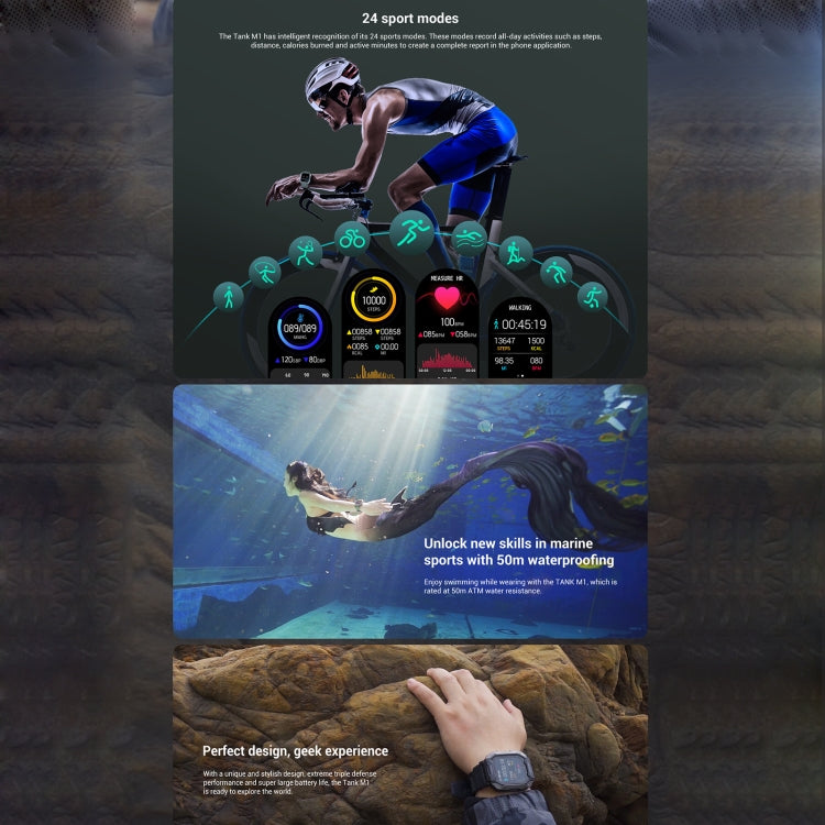 TANK M1 1.72 TFT Screen Smart Watch, Support Sleep Monitoring / Heart Rate Monitoring