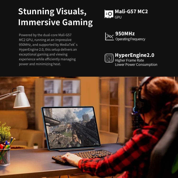 ٣. قوة معالج Helio G99: يكمن في قلب جهاز T70 معالج Helio G99 الهائل، راسيًا معيارًا جديدًا للسرعة والكفاءة. مع ذاكرة وصول عشوائي (RAM) تصل إلى ٢٠ جيجابايت (٨ جيجابايت أساسية مع إمكانية إضافة ١٢ جيجابايت) وسعة تخزين ٢٥٦ جيجابايت، قابلة للتوسيع إلى ١ تيرابايت، صُمم هذا الجهاز اللوحي للتعامل مع أكثر التطبيقات تطلبًا وتعدد المهام بسهولة، ليُرسي بذلك معايير جديدة في عالم الحوسبة المتطورة.