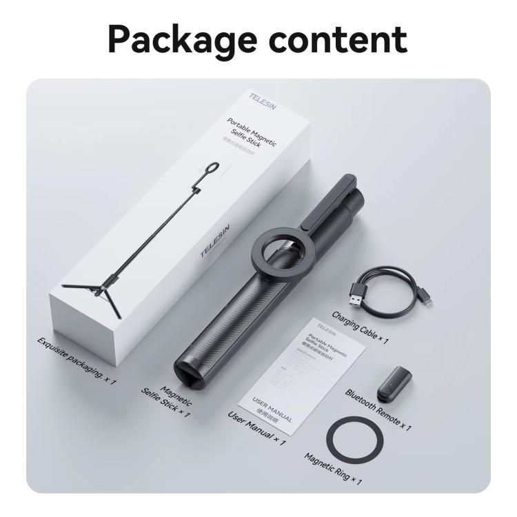 TELESIN 1.3m Magnetic Selfie Stick Tripod Phone Stand for Outdoor Vlog & Live Streaming with Bluetooth Remote