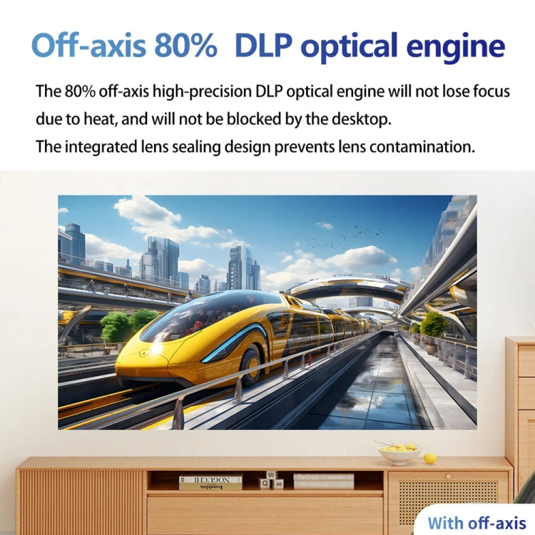 3. 80% off-axis high-precision DLP optical machine, will not heat loss of focus, not by the desktop blocking light