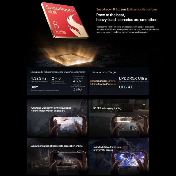 1. وحدة المعالجة المركزية: Qualcomm Snapdragon 8 Elite، ثماني النواة، 3 نانومتر، 4.32 جيجاهرتز × 2 + 3.53 جيجاهرتز × 6