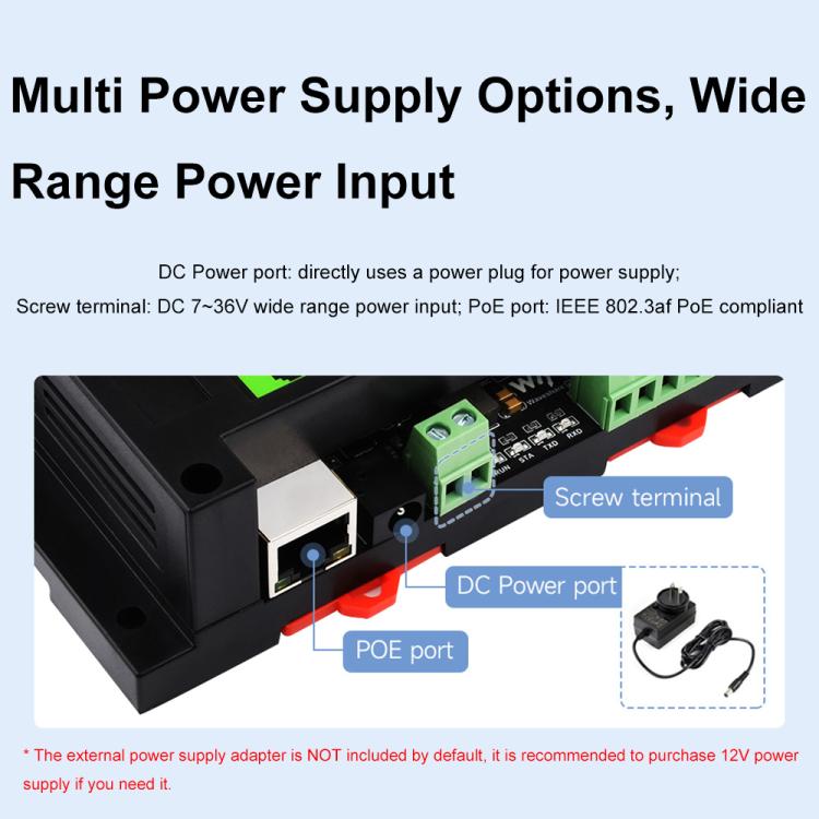 2. Support DC 7-36V wide voltage power supply, support PoE Ethernet power supply