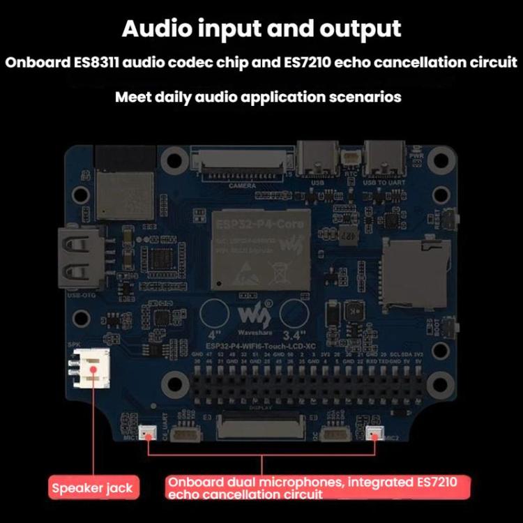 8. Onboard ES8311 audio codec chip and ES7210 echo cancellation circuit, meeting daily audio application scenarios
