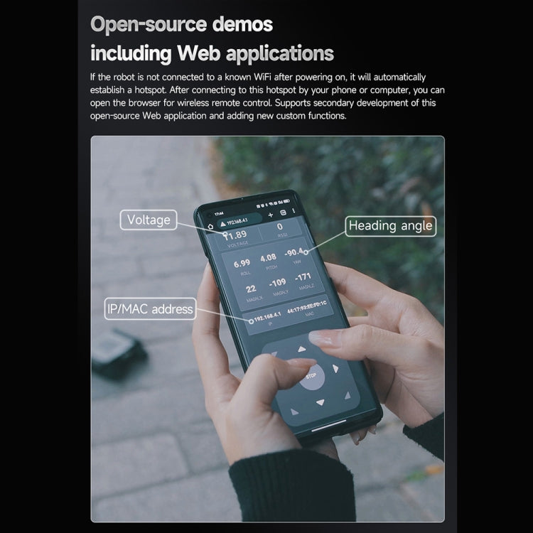 1. WAVE ROVER is a four-wheel-drive mobile robot chassis with an all-metal body. It has strong off-road traversing capabilities and shock absorption performance. All codes are open source and can be developed again.