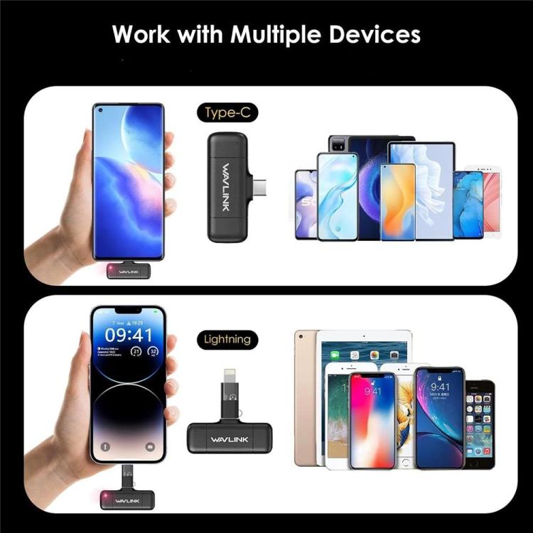 WAVLINK WS-WAJ606C1 Lavalier Noise Reduction Wireless Microphone with 8 Pin RX Receiver
