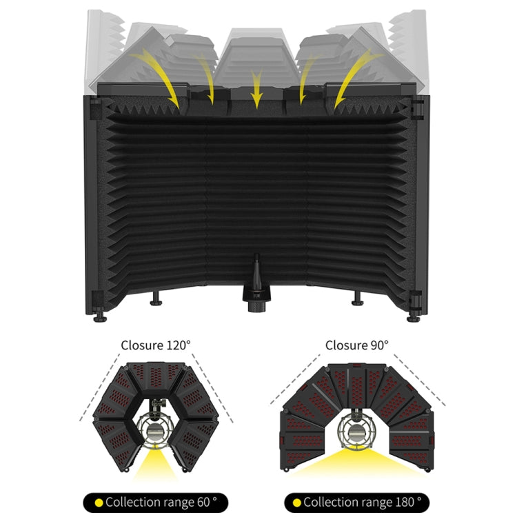 2. Flexibility And Convenience: There is lots of flexibility working with the microphone isolation shield with a stand as you can choose to use the 5-panel design foldable end panels. It is easy to adjust the arch design, enables angle adjustments for optimal sound insulation and meets the recording needs of the environment hence ensures only the high quality recordings.