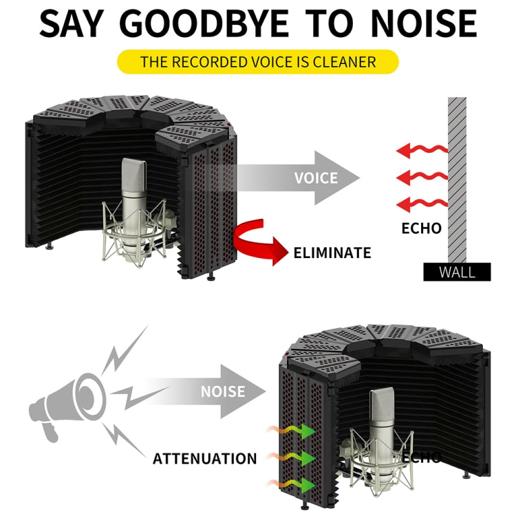 3. Super Noise Reduction Design: This one is designed to block all sound interpretations with its compact design.It is a full package design, with a foldable top to efficiently cancel out noise interference from the environment for a noiseless,multi-layer noise cancellation structure. It reduces noise on the back and side to ensure cleaner and clearer recordings.The reflection area and the absorption area reduce noise generated by the external environments.