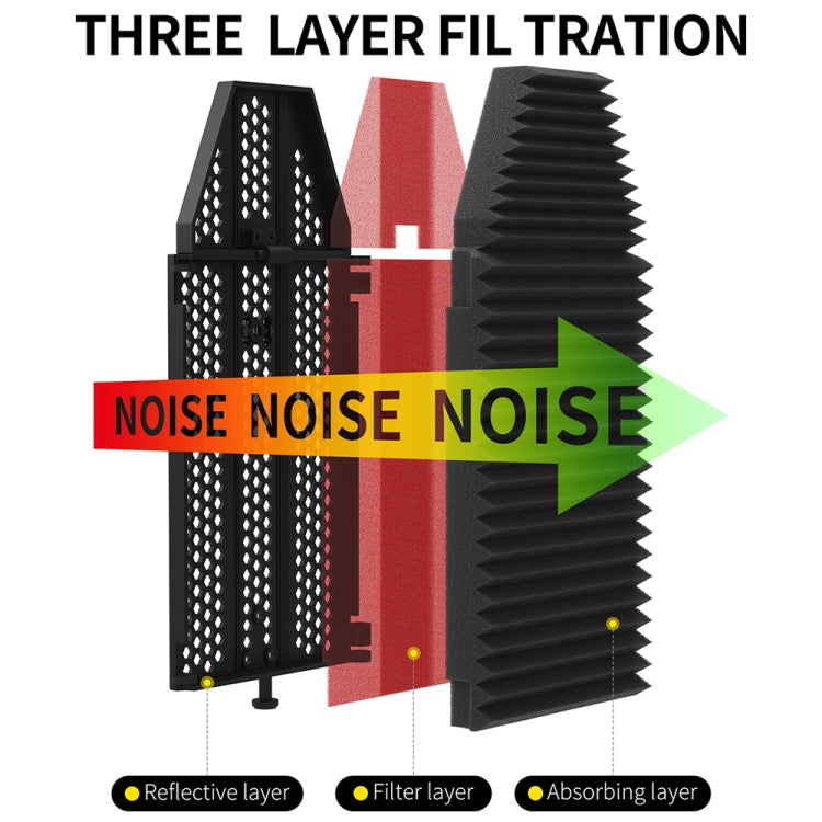 1. Reduces Noise Interference: The noise isolation stand has 3 layers that work in tandem to reduce noise while recording. It particularly relies on reflectors with a triangular high density thickened sponge insulator material which reduces the propagation of interference sound waves and creates good recording conditions that result in sublime recordings.