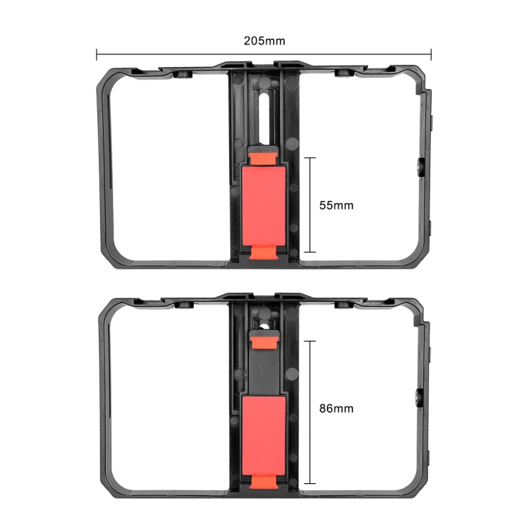 8. The side and bottom of the cage are equipped with 1/4 screw holes, which can be connected with tripods, handles and other equipment to achieve horizontal and vertical shooting