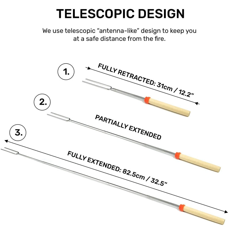 1124-7 Retractable Wooden Stick Marshmallow BBQ Fork, Spsc: Drawstring Bag