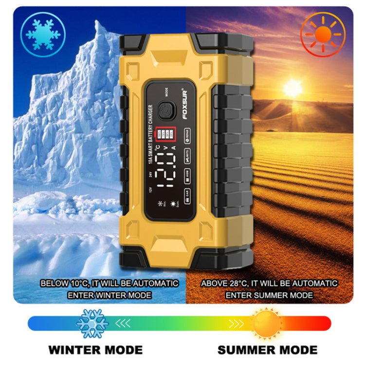 FOXSUR 12V / 24V / 10A Car / Motorcycle Battery Smart Repair Lead-acid Battery Charger