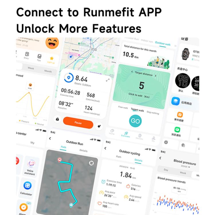 15. Functions: MAl health management system, 100+ exercise modes, activity logging, Bluetooth calling, one-touch measurement, heart rate, stress, blood oxygen, sleep, breathing training, MET, weather, information, music control, timer, stopwatch, calculator, alarm clock, flashlight, find your cell phone and more