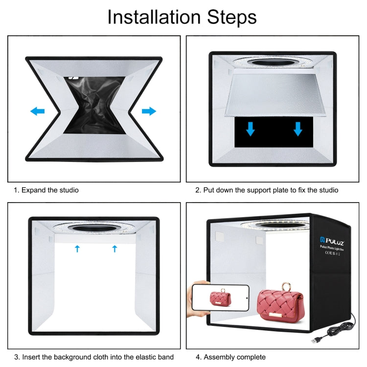 4. Portable folding design, easier to install and carry, built-in LED light, provide average light, prevent shadow and reflection in the photo.