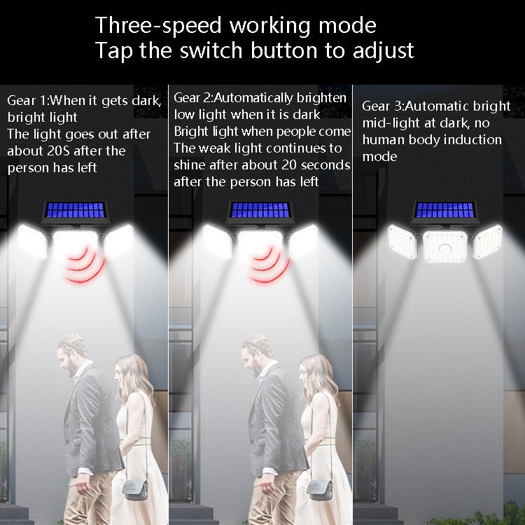 Solar 3-Head Rotatable Wall Lights Human Sense Outdoor Waterproof Garden Street Light, 112 LED, 138 LED, 132 COB