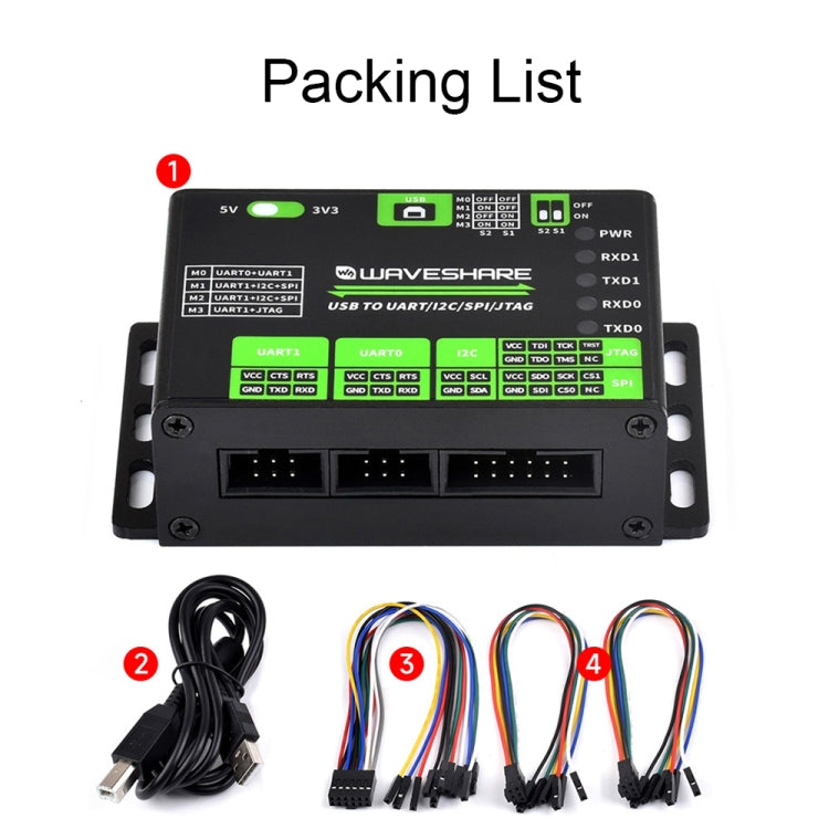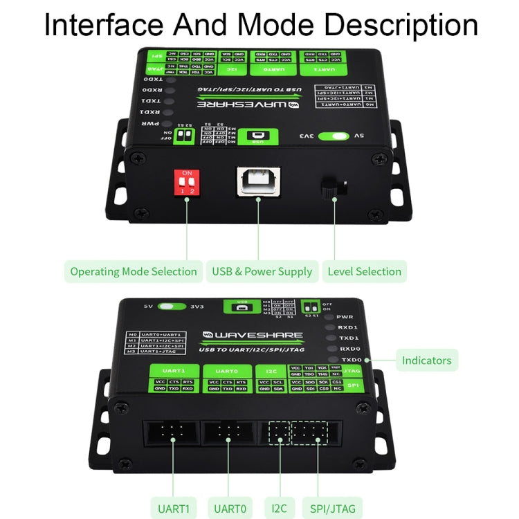 Waveshare 25411 3.3/5V USB To UART/I2C/SPI/JTAG Converter, Supports Multiple Interfaces