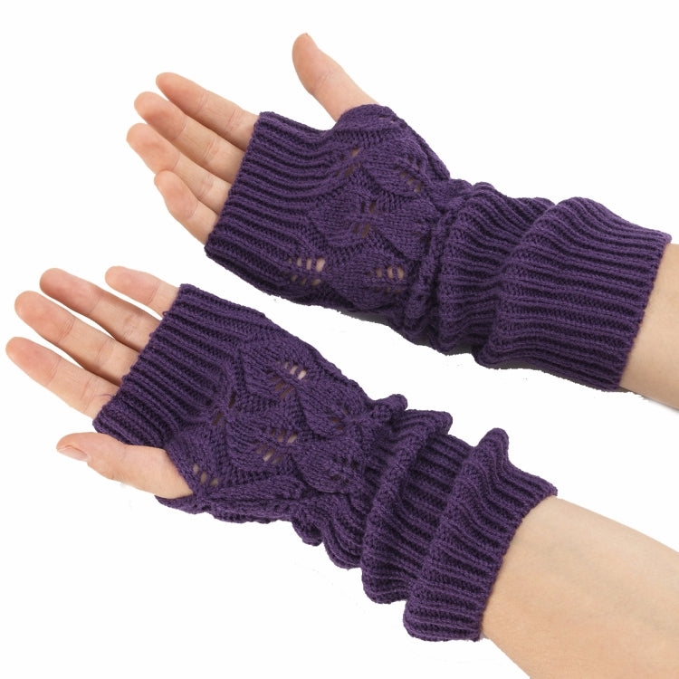 Winter Men and Women Knitted Jacquard Leaves Cycling Warm Fingerless Wool Gloves