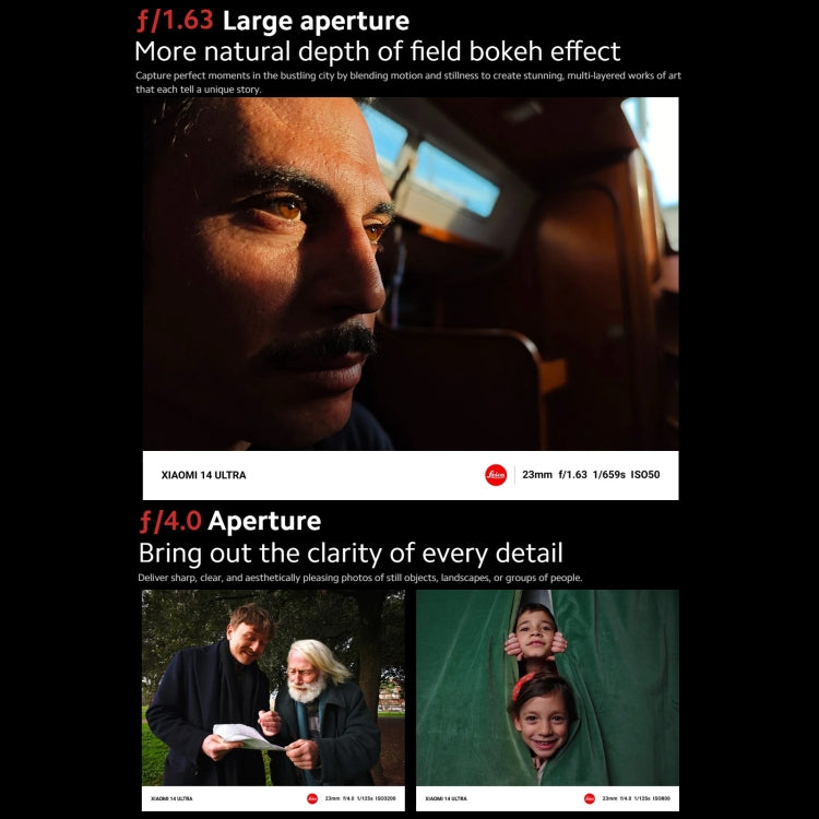 1. Rear camera:50MP 1-inch variable aperture main camera (f/1.63 - f/4.0 stepless variable aperture, equivalent 23mm focal length, supports four-in-one 3.2μm large pixel output, HyperOIS super optical image stabilization, Octa-PD phase focusing, 8P coating) + 50MP Leica floating telephoto (f/1.8 aperture, equivalent 75mm focal length, supports OIS optical image stabilization, 10cm macro) + 50MP Leica close-up telephoto (f/2.5 aperture, equivalent 120mm focal length, supports OIS optical image stabilization) shake, supports Zoom EIS anti-shake, 30cm telephoto macro) + 50MP Leica ultra-low distortion wide-angle (f/1.8 aperture, 12mm equivalent focal length, 122 degree ultra-wide angle, AF autofocus, 5cm super macro)