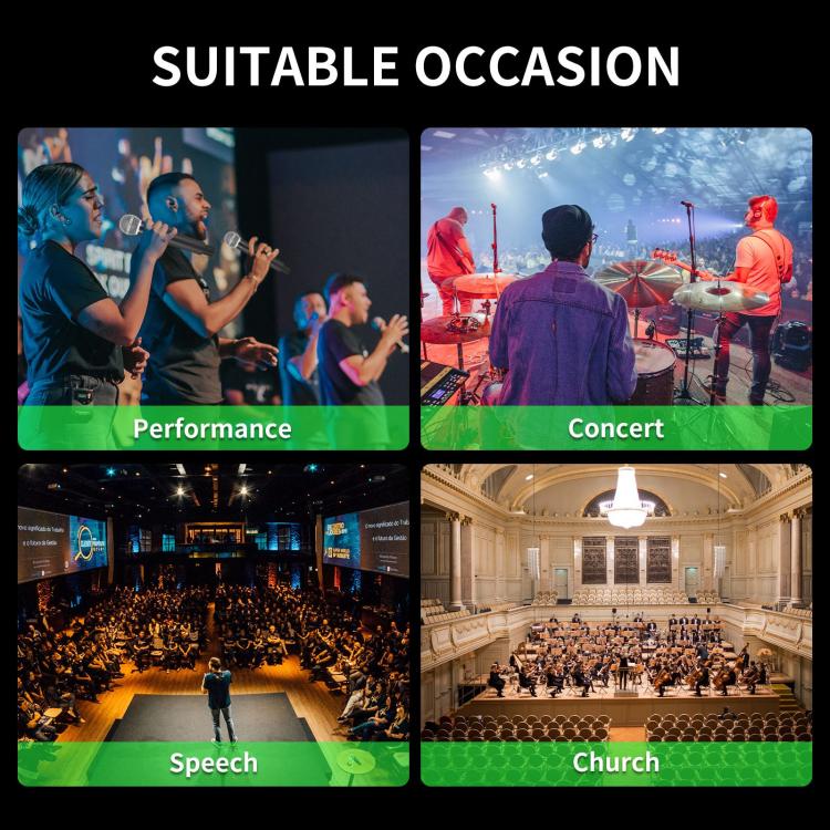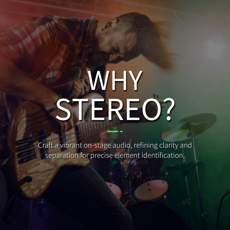 1. Supports stereo/mono mode selection, combined with UHF band phase-locking technology, providing a silent and delay-free audio experience, allowing you to enjoy clear and separated sound quality during the performance, as if you were there.